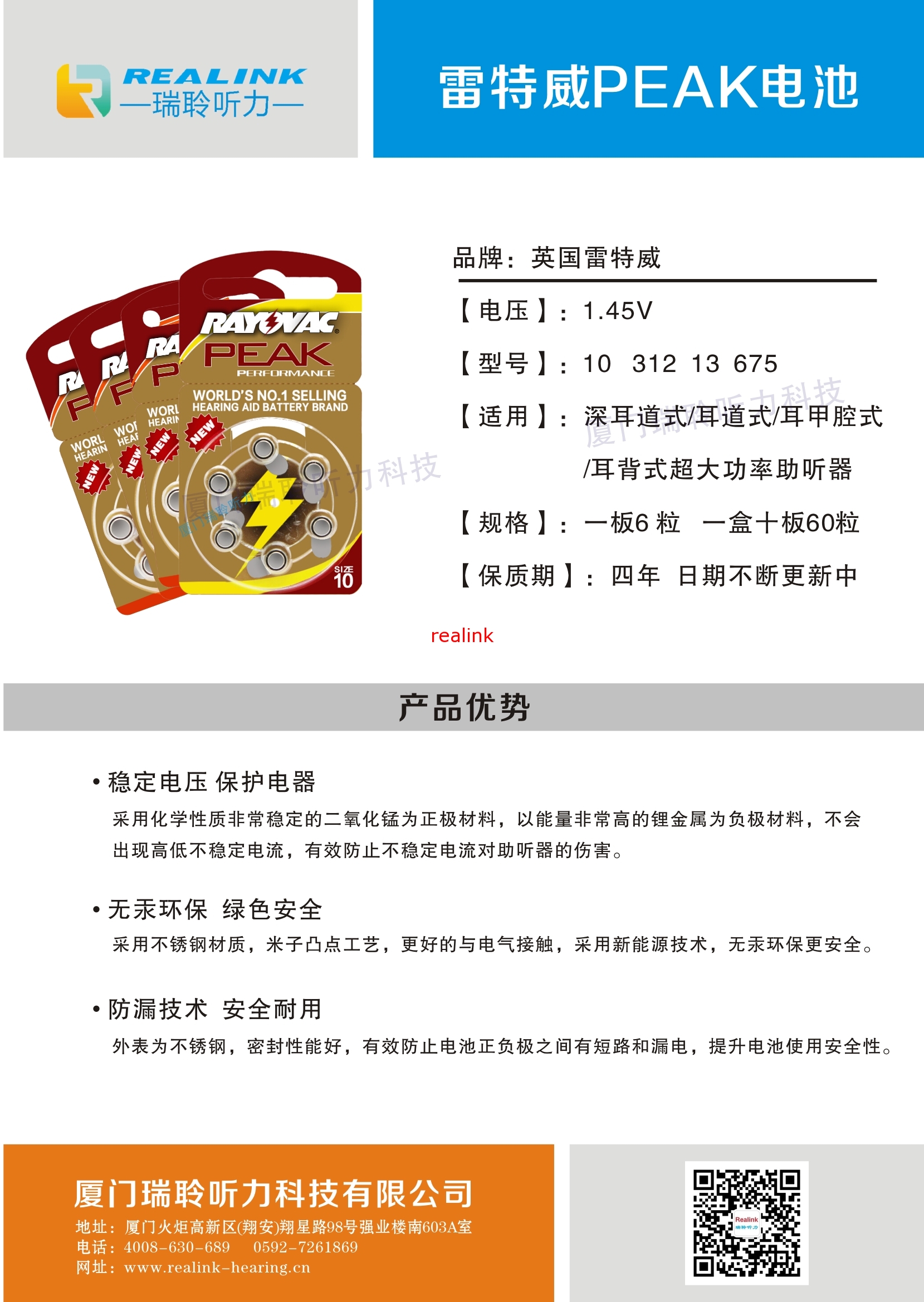 助听器专用电池