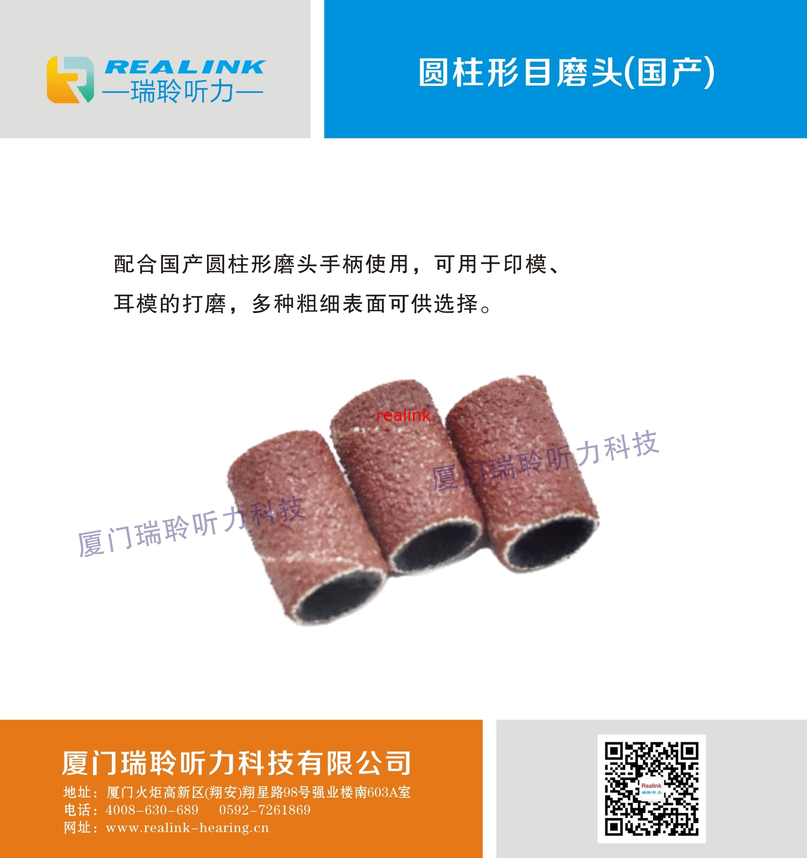 配合国产圆柱形磨头手柄使用,可用于印模、耳模的打磨,多种粗细表面可供选择。